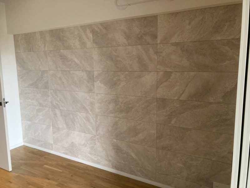 壁の大きさに合わせ、タイルをカットをして綺麗に調整します。