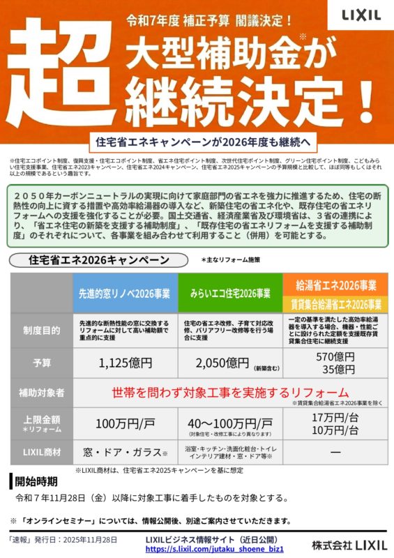 🏠 2026年度 住宅省エネ補助金|速報のお知らせ
